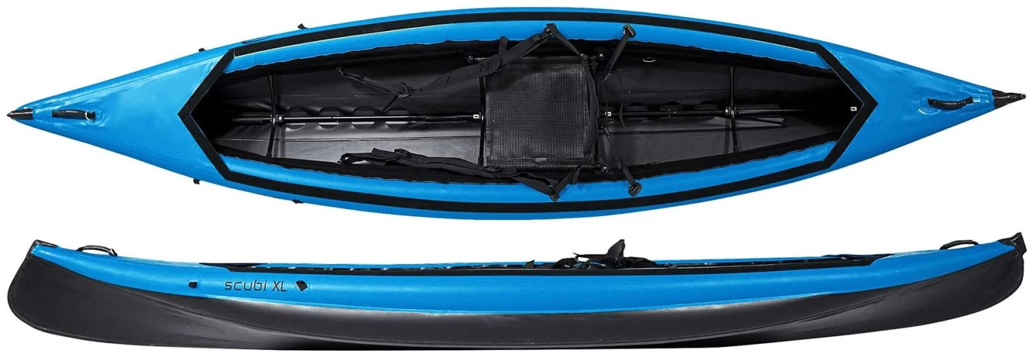 De Nortik Scubi 1 XL is een hybride kajak die ook geschikt is voor de lange peddelaars. Het is snel opgebouwd en uitgerust met twee hogedrukluchtkamers, die een druk hebben tot 0,35 bar (5,07 psi) terwijl de bodem niet uit luchtelementen bestaat en dus de nodige trek genereert voor goede prestaties in het water. Een kajak met de beste hybride technologie die slechts een minimum aan framedelen nodig heeft om stijfheid en een perfecte tracking in het water te genereren. Denk aan een opblaasbare kajak met een platte bodem – die boot is altijd alleen op het wateroppervlak en wordt beïnvloed door wind, golven en beek – niet in het water zoals een scubi met de hybride technologie. De tracking is veel beter en je hebt minder energie nodig om je bestemming te bereiken.