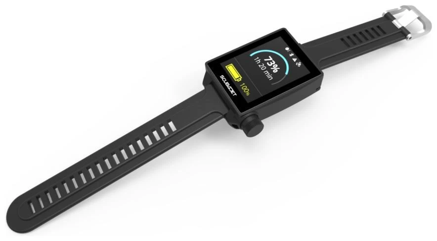 Het horlogescherm toont: Resterende tijd, Batterijstatus en Snelheid